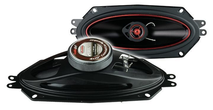 Features 4" X 10" Injection Cone with Rubber Edge 30mm Mylar Tweeter 1" ASV Coil 6 Oz Magnet Weight 4 Ohm Impedance 200 W Max. Power Frequency Response: 40Hz - 20 KHz Sensitivity: 88 dB/W (1m)