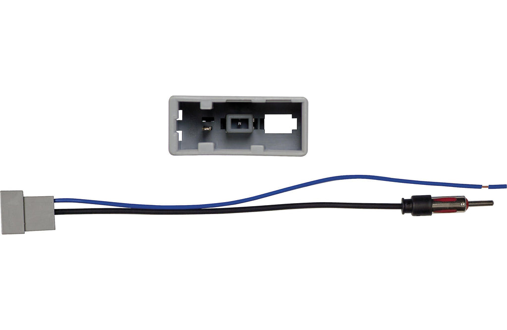 Features Works with select 2007-up Infiniti, Suzuki, and Nissan vehicles — Motorola male to factory OEM antenna female 12" Nissan antenna adapter cable with a proprietary Nissan factory antenna plug on one end and a standard male motorola plug and bare blue wire on other end