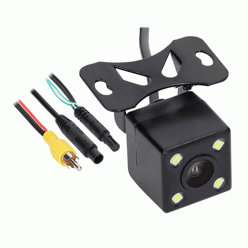 Features Features License plate backup camera NTSC 648 x 488 display, 520 line resolution 0.5 Lux illumination 150 Degree viewing angle Stationary parking guidelines switchable ON/OFF Mirror/Non Mirror(Switchable For Front Camera) License plate Mount Waterproof IP67 Operating working voltage DC 9-16V Includes fused wiring harness