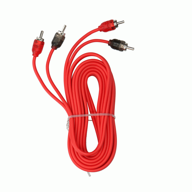 2-channel RCA Cable 17 FT Woven coaxial design for increased noise rejection Ultra-flexible Red PVC blended jacket High tolerance compact molded ABS end Dual split tip for maximum contact area Packaged in resealable retail polybag