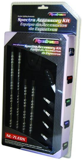 Features 7 Color LED Color Changing Lighting Kit 2 WIreless Remote Controls (2) 9in LED Rods (2) 6in LED Rods 4 Single Color Changing Single LED Lights Can Run all colors or Set to one color Speed Control Setting Great for Interior of Cars, Trucks, Motorcycle, In Doors Installation Hardware and Instructions Included