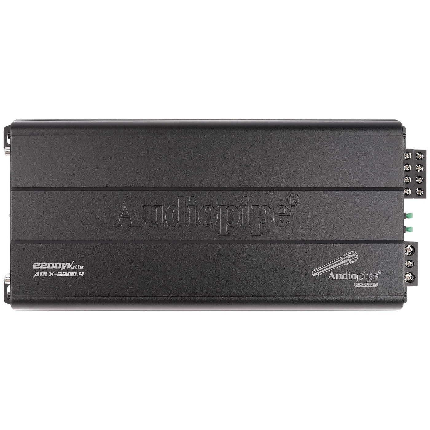 The Audiopipe APLX-2200.4 is a versatile 4-channel Class A/B MOSFET amplifier delivering up to 2200W peak power with clear, low-distortion sound. Its wide frequency response and adjustable input sensitivity allow precise tuning for both full-range speakers and subwoofers. Designed to perform reliably from 9V to 16V, it offers durable, high-quality audio for daily driving or competitive setups, ensuring your car audio system sounds its best in any situation.